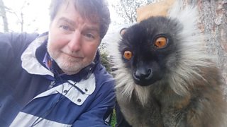 James is knocked off his feet by an amorous tortoise at Peak Wildlife Park.