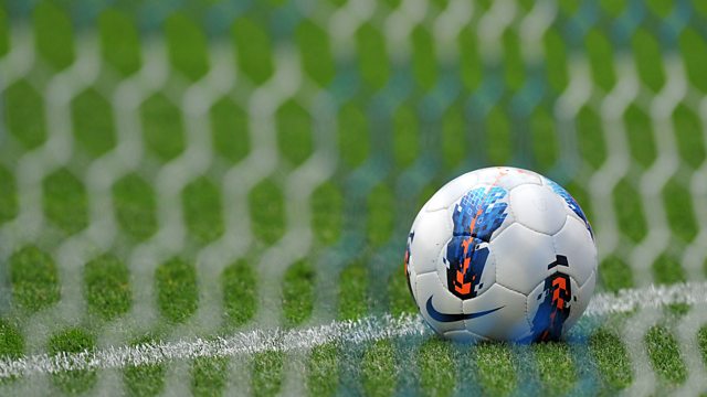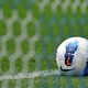 Photograph shows a football behind a goal net. (Credit: Press Association)