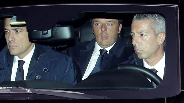 (Photo: Matteo Renzi (centre) arrives at presidential palace in Rome. Credit:Reuters.)