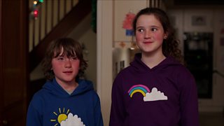 Mae'r efeilliaid wedi torri cloch Nadolig Taid. Pwy sydd yn dda am drwshio petha? Corac...