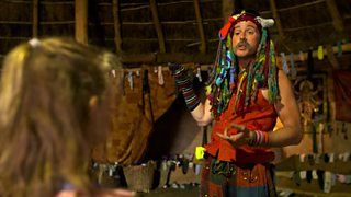 Mae Deian a Loli yn rhewi'r oedolion i'r unfan ac yn dianc i'r sied i chwarae efo set d...