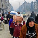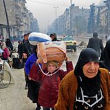 Photograph shows Syrian residents fleeing violence. (Credit: AFP/Getty Images)