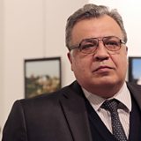 (Photo: Russian ambassador Andrei Karlov giving a speech in art gallery. Credit: Burhan Ozbilici/AP.)