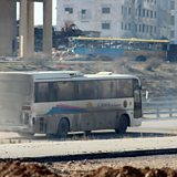 LA Times journalist Nabih Bulos watches buses cross at Ramousseh in south-western Aleppo. Meanwhile the UN approves a resolution to deploy observers in eastern Aleppo.
