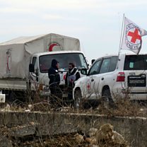 (Photo: Red Cross vehicles in Aleppo, credit:AFP/Getty)