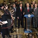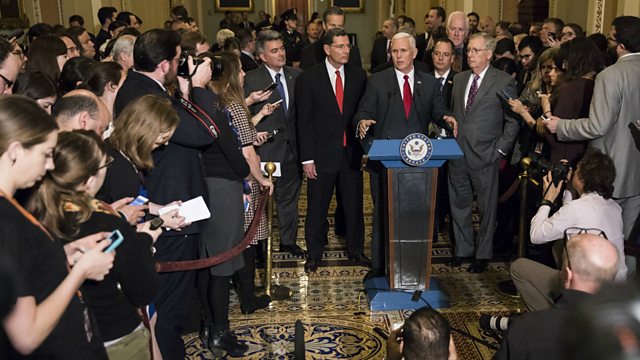 (Photo: Vice President-elect Mike Pence speaks with Congressional Republican leadership about repealing the Affordable Care Act, or Obamacare, Washington, 2017. Credit: Getty Images)