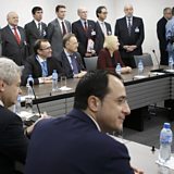 (Photo: Cyprus peace talks in Geneva. Credit: EPA.)