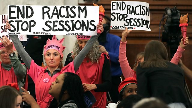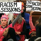 (Photo: Protest at Jeff Sessions' confirmation hearing on Capitol Hill, Washington: 10/01/17. Credit: Getty Images)