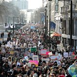 (Photo: Protesters make their way through the streets of London during the Women's March on January 21, 2017. Credit: Dan Kitwood/Getty Images)