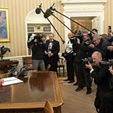 (Image: President Donald Trump signs his first executive order as President in the White House's Oval Office on 20th January 2017. Credit: Kevin Dietsch/Getty Images)