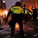 (Photo: WASHINGTON, DC - JANUARY 20: Police and demonstrators clash in downtown Washington after a limo is set on fire following the inauguration of President Donald Trump. Credit: Spencer Platt/Getty Images)
