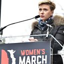 Actress Scarlett Johansson amongst protesters rallying worldwide against Donald Trump
