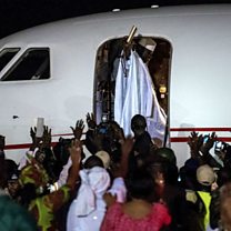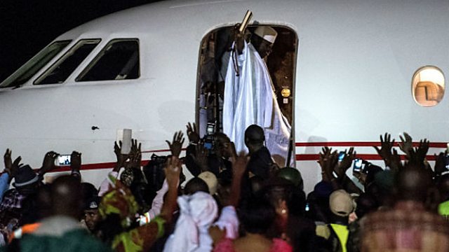 (Image: Ex-President Yahyah Jammeh waves to a crowd of supporters before leaving the country on 21st January 2017 at Banjul International Airport, Gambia. Credit: Andrew Renneisen/Getty Images)