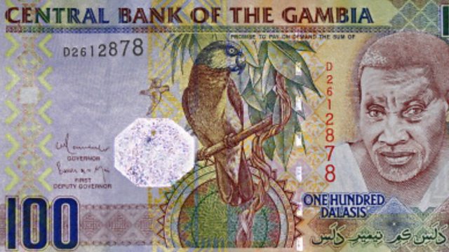 (Photo: Gambian currency, 100 Dalasis bank note. Credit: Getty Images)