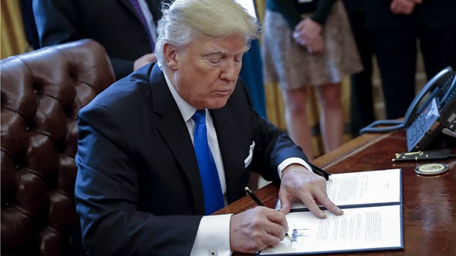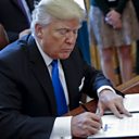 President Trump signs executive orders relaunching construction of two oil pipelines that angered environmentalists, 14 Oscar nominations for 'La La Land', India to assess whether Mount Everest has shrunk (Photo: President Trump in White House signing an executive order relating to new oil pipeline. Credit: EPA/Shawn Thew)