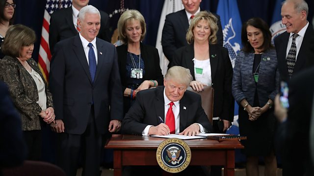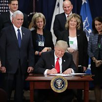 (Photo: Trump signing executive orders, one to begin the process of building a wall along the US-Mexico border. Credit: Getty Images)