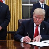 (Image: US President Donald Trump signs an executive order. Credit: AFP/Getty Images)