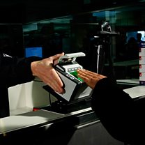 (Photo: Archive picture showing incoming airline passengers being fingerprinted at Dulles International Airport Credit: Getty Images)