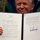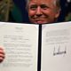 (Image: U.S. President Donald Trump shows an executive action document after signing it, at the Pentagon in Washington. Credit: Reuters/Carlos Barria)