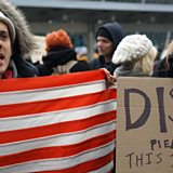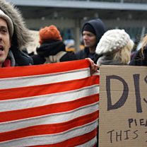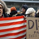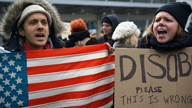 ( Picture: Protesters assemble at JFK Airport, New York. Credit:AP /Craig Ruttle)