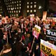 (Photo: Demonstrators hold placards as they protest outside Downing Street in London. Credit: Getty Images)