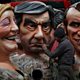 (Image: Caricatures of National Front leader Marine Le Pen (L), Republican party candidate Francois Fillon (C) and independent centrist contender Emmanuel Macron (R), on 27th January 2017 in Nice, France. Credit: Alery Hache/AFP/Getty Images)