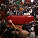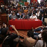 Photo: Civil society activists' press conference in Ecuador on Colombian peace talks. Credit: Juan Cevallos/AFP/Getty Images
