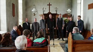 Hanes antur epig Only Men Aloud ar ynys anghysbell Enlli oddi ar arfordir Gogledd Cymru...
