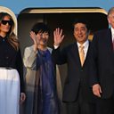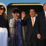 (Photo: President Donald Trump and his wife Melania Trump arrive with Japanese Prime Minister Shinzo Abe and his wife Akie Abe on Air Force One in Florida. Credit: Joe Raedle/Getty Images)