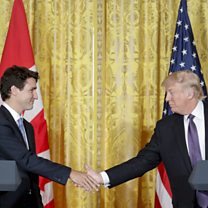 US and Canada leaders meet for the first time to discuss their shared economic and security goals, as well as contrasting policies on immigration.