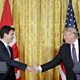 (President Donald Trump and Canadian Prime Minister Justin Trudeau shake hands during a joint news conference in the White House. Credit: AP)