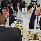 (Picture: Mr Flynn was pictured dining with Russian leader Vladimir Putin in December 2015 Credit: AP)