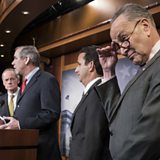 ( Picture: Democrats, including Senate Minority Leader Chuck Schumer, attempt to delay Scott Pruitt's confirmation. Credit AP)