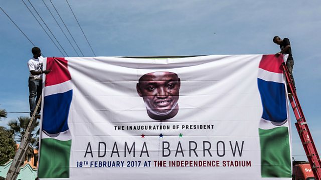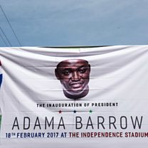 (Photo: A banner for the inauguration ceremony of Gambian President Adama Barrow. Credit: Getty Images)