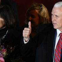 (Image: US Vice-President Mike Pence and his wife Karen Pence arrive at Franz-Josef-Strauss airport to attend the Munich Security Conference. Credit Christof Stache/AFP/Getty Images)