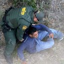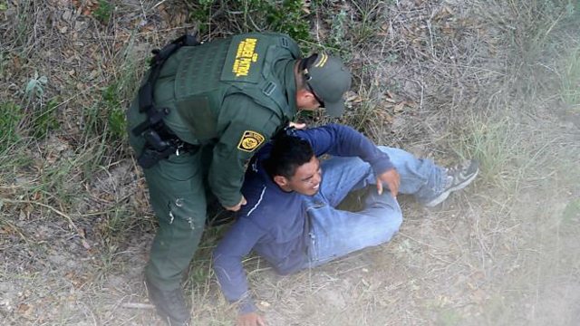 (Photo: US border patrol agent apprehends undocumented immigrant near Texas in 2014; Credit: Getty Images)