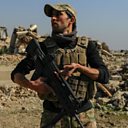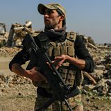 (Picture: A member of the Iraqi forces standing beside a destroyed Mosul's airport building. Credit: Reuters.)