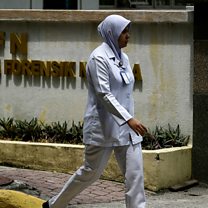 ( Image: A nurse walks past the forensics wing of the Hospital Kuala Lumpur where the body of Kim Jong-Nam, is being kept. Credit: Manan Vatsyayana/AFP/Getty Images)