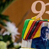 (Photo: A cake bearing a portrait of Zimbabwe's President Robert Mugabe during a private ceremony to celebrate his 93rd birthday, 2017. Credit: Jekesai Njkizana./AFP/Getty Images.)