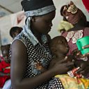 (Photo: A baby is given nutritional supplements at a community health centre at a refugee settlement. Credit: Getty Images.)