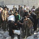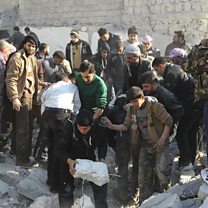 (Photo: Archive picture of Aleppo residents clearing rubble following an attack. Credit: AP)