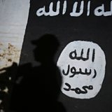 (Photo: An Iraqi soldier walks past a mural of the Islamic State on March 1, 2017, in the village of Albu Sayf, as Iraqi forces launched a major push to recapture the west of Mosul from IS.