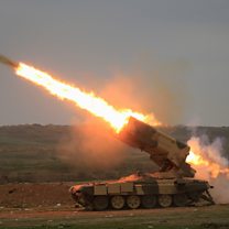 (Photo: An Iraqi Army officer uses his mobile phone to film a rocket launched towards Islamic State militants during a battle in Mosul. Credit: Reuters)