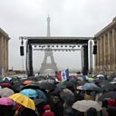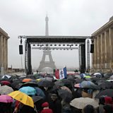 (Photo shows: People take part in a rally to support French presidential election candidate for the right-wing Les Republicains party Francois Fillon on the Trocadero plaza, opposite the Eiffel Tower. Photo Credit: GEOFFROY VAN DER HASSELT/AFP/Getty Images)