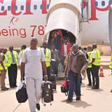 (Photo: Re-routed passengers arrive at Kaduna airport in Nigeria. Credit: Stringer/AFP/Getty Images)