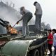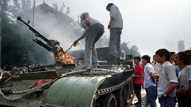 (Photo: Chinese citizens check a burning armoured personnel carrier which was put in on fire by rioters fighting back when the army opened fire on the civilians on June 4, 1989 near Tiananmen Square in Beijing; Credit: Getty AFP)