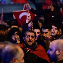 (Photo: Turkish residents of the Netherlands protest outside Turkey's consulate in Rotterdam. Credit: Getty Images)