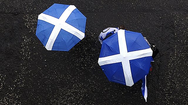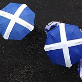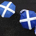 (Pro-Scottish Independence supporters march with Scottish Saltire umbrellas, July 30, 2016. Credit: Andy Buchanan/AFP/Getty Images)
