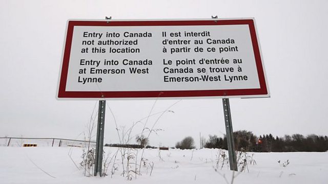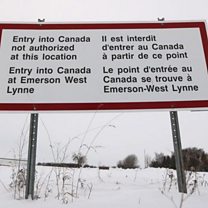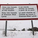 (Picture: Sign at Canada/US border town forbidding would-be migrants from entering the country Credit: AP)
