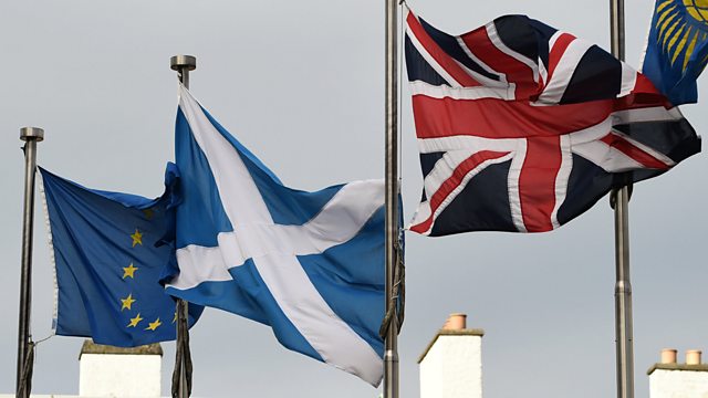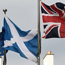 (Photo: A Scottish Saltire flies between a Union flag and a European Union flag in front of the Scottish Parliament. Credit: Lesley Martin/AFP/Getty Images)